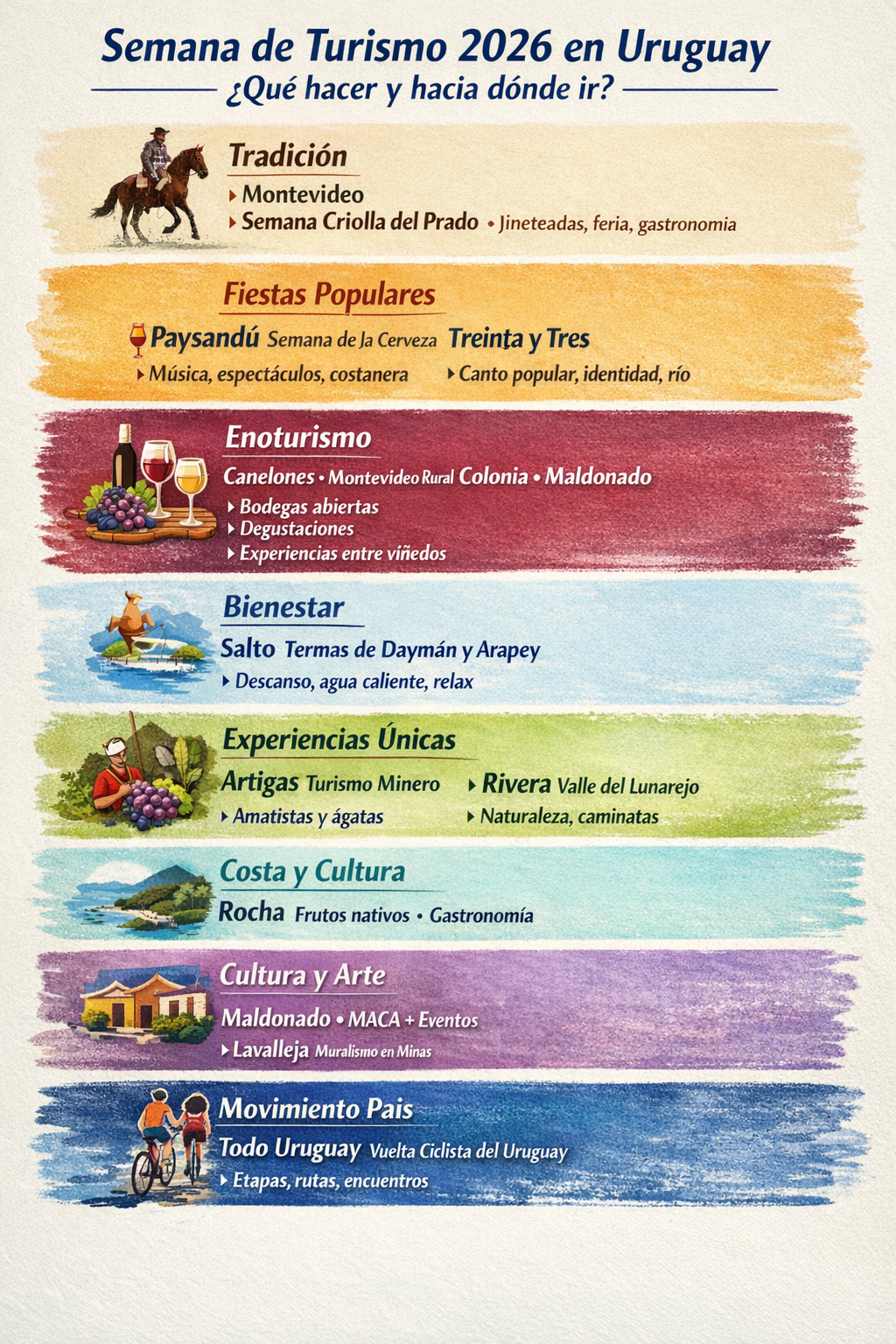Por qué cambia de fecha la Semana de Turismo y qué actividades ofrece Uruguay en 2026. Un recorrido por todo el país, entre historia y experiencias.